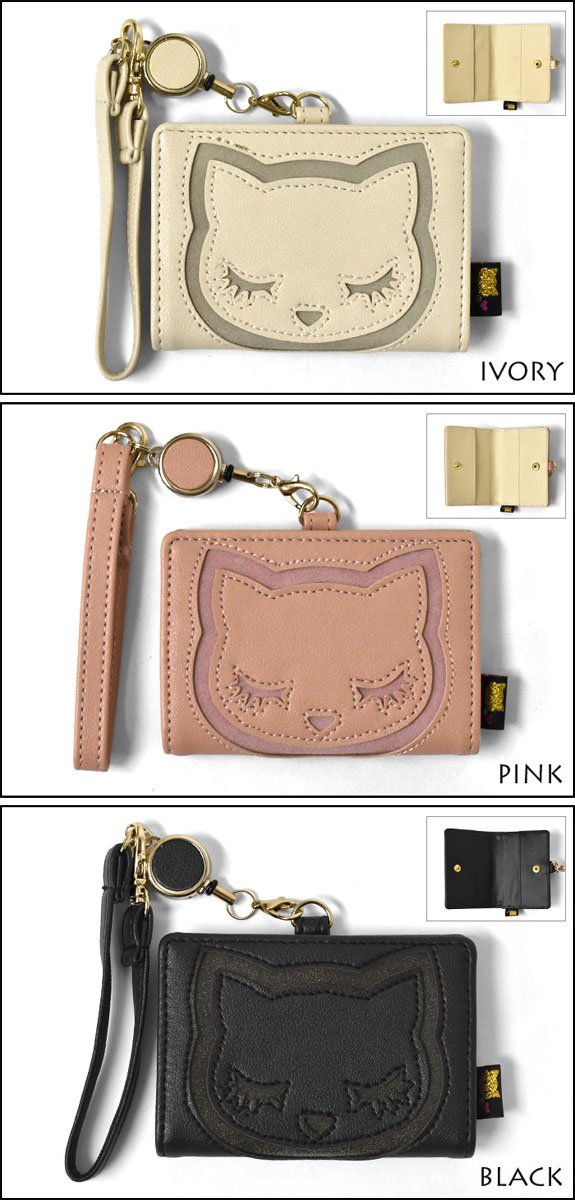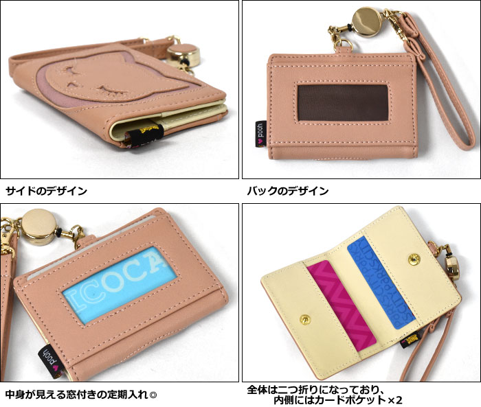 フェイクレザー MIX プーちゃん リール付き 二つ折り パスケース /レディース 定期入れ カードケース ケース ストラップ 1枚 2枚 3枚 リール リール付きパスケース 合成皮革 合皮 革 レザー かわいい 可愛い おしゃれ オシャレ 小物 グッズ 猫グッズ 雑貨 黒猫 猫 ねこ/